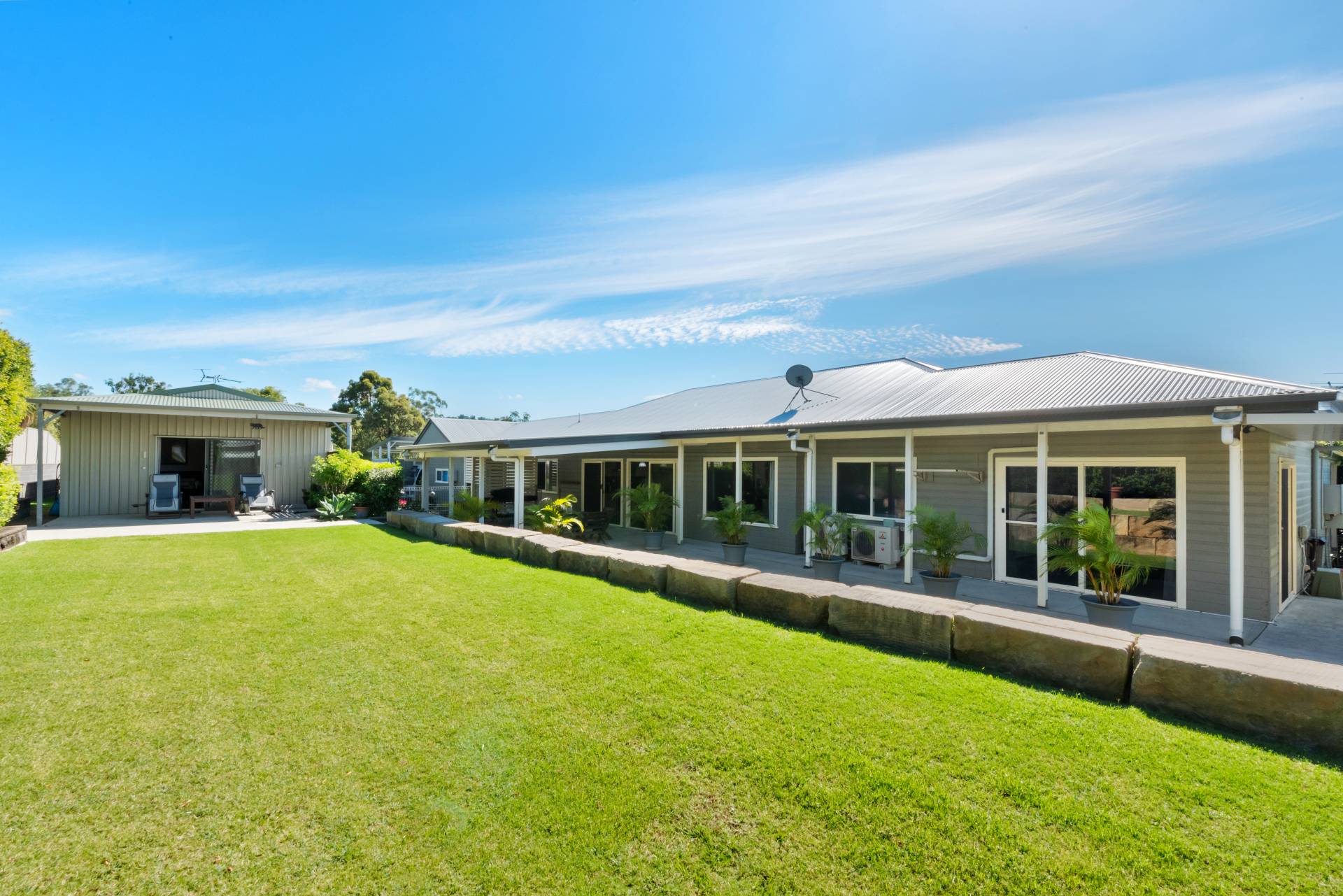 This four bedroom home has a massive 5m x 4m Master Bedroom with ensuite and WIR. There is a large formal lounge, a rumpus room, and an open plan living/dining, which is overlooked by the modern kitchen. The massive windows allow plenty of light, while overlooking the fabulous alfresco entertaining and of course that great big yard that wraps around your property creating the complete living environment. As well as the large indoor living areas there are four outdoor living areas to choose from. Add to this a fitted out shed with kitchenette, fully insulated with separate power, and ceiling fans. The large garage is 8 x 7m with 3m ceilings, and throw in an extra 6 x 4m shed for storage. Extras include air conditioning, security screens, stone benches, gas cook top, dishwasher, 2.7m high ceilings throughout, and a whopping 5KW of solar panels.  Add in the fully automated irrigation system. This home will not disappoint.